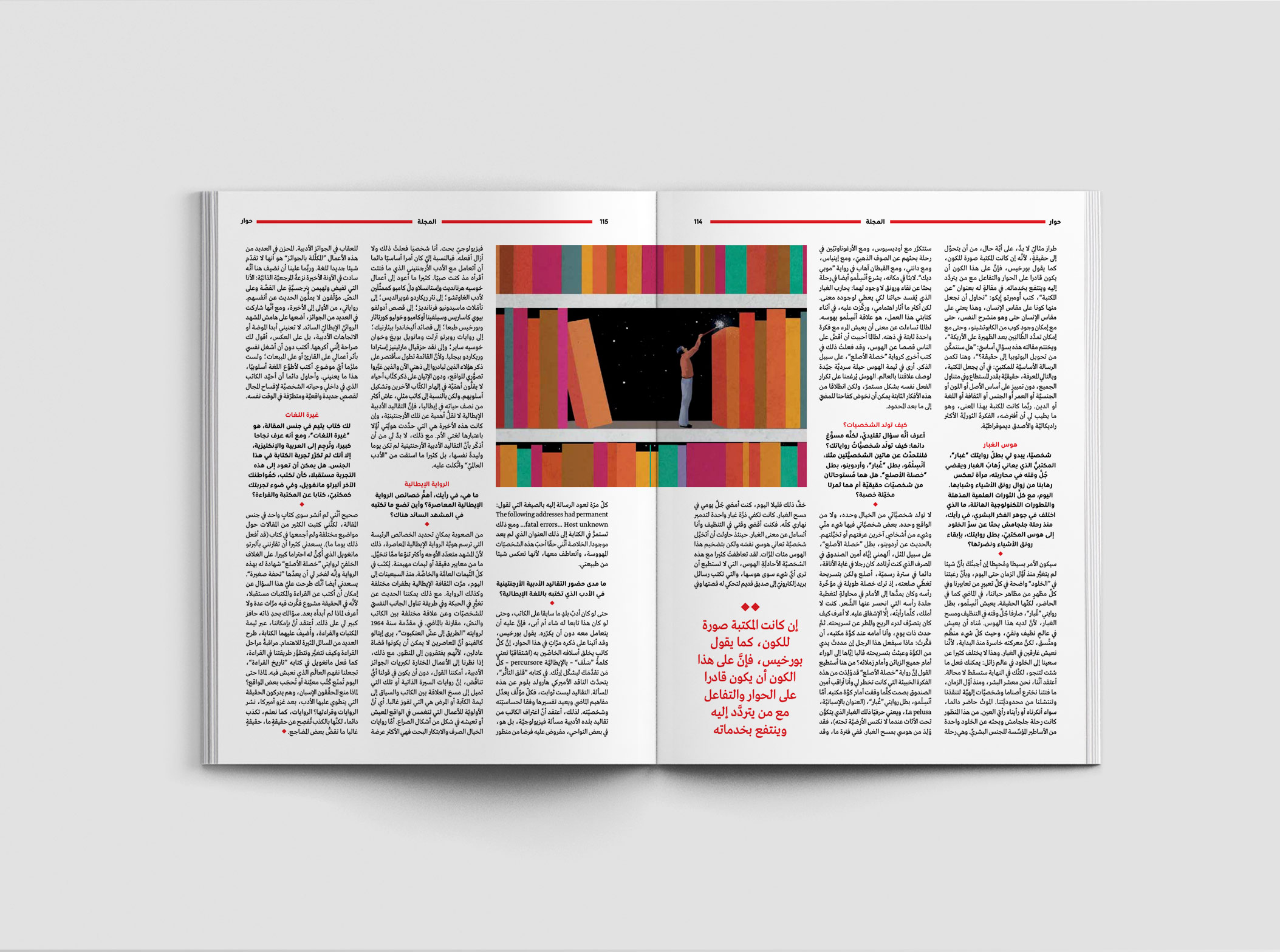 Adrian N Bravi portrait and spot illustration for Al Majalla Argentine writer Adrian N. Bravi: Novels lie to expose the truth About libraries, writing, and obsession. *If the library is an image of the universe, as Borges says, then this universe must be able to dialogue and interact with those who frequent it and benefit from its services.»
